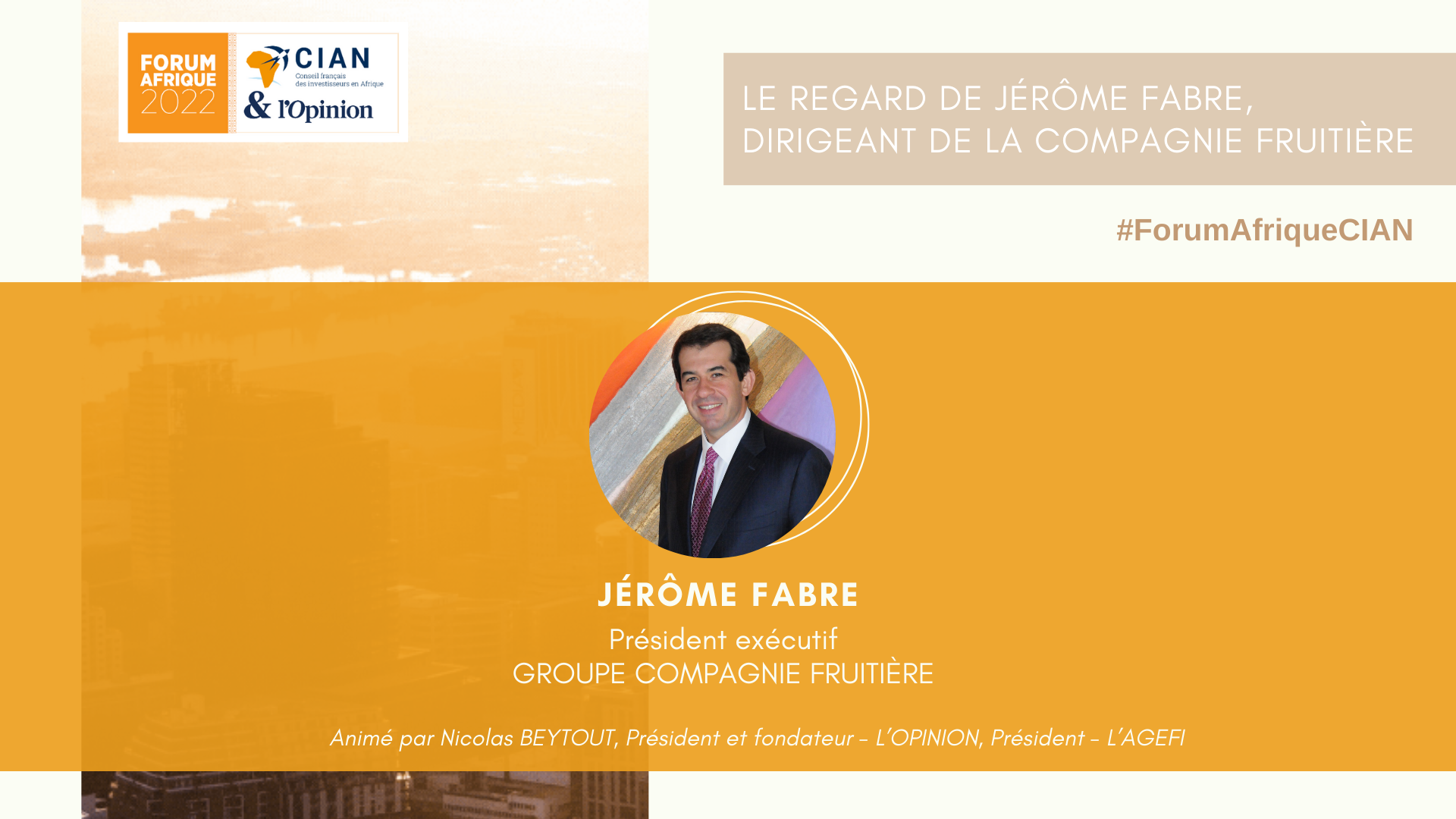 Jérôme FABRE, GROUPE COMPAGNIE FRUITIÈREL'Afrique, c'est un continent connecté, des gens tout à fait conscients des évolutions du monde. En tant qu'entrepreneur, nous devons comprendre la culture du pays dans lequel nous sommes implantés.